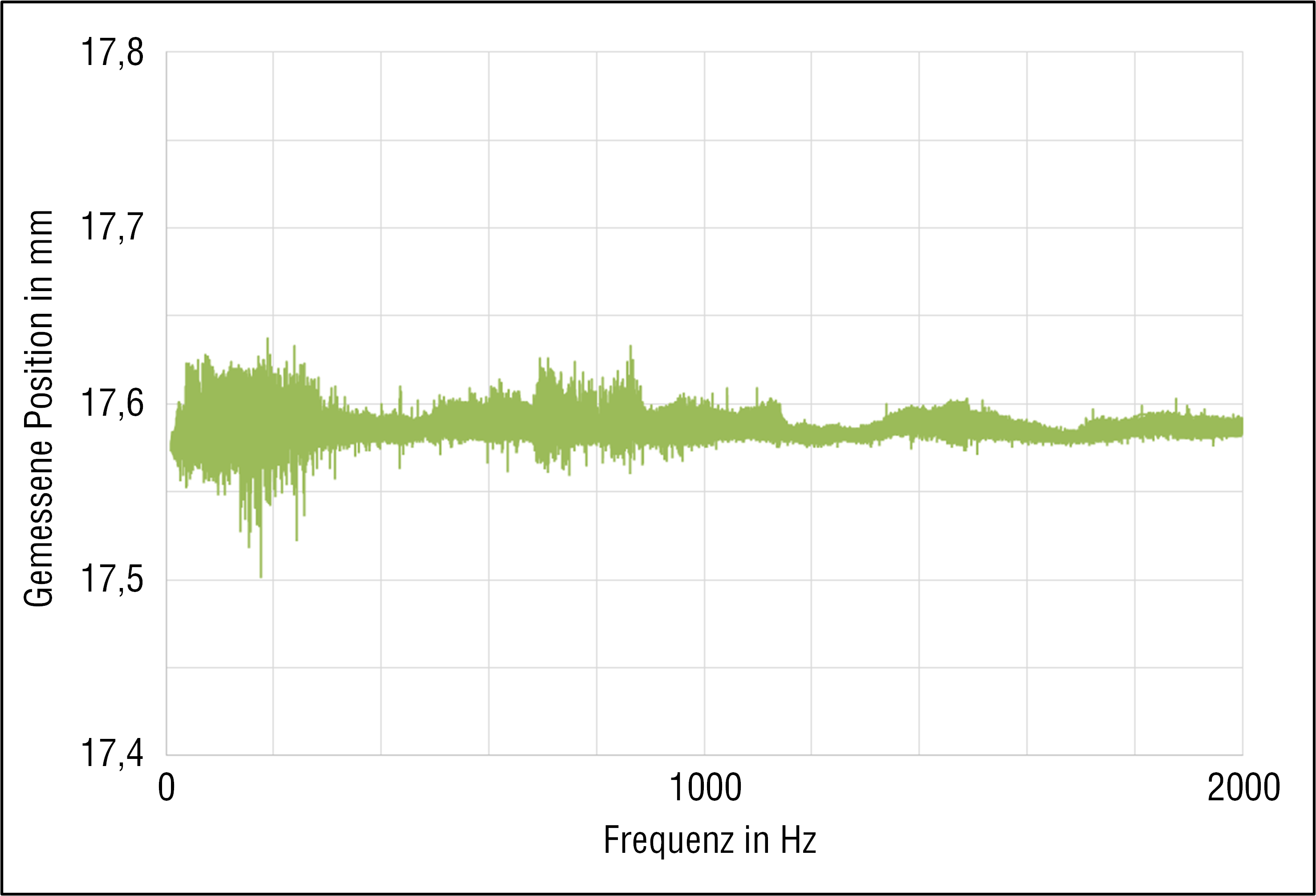 Abb. 3: Gemessene Position eines magnetostriktiven Sensors bei einer Vibration von 30 g